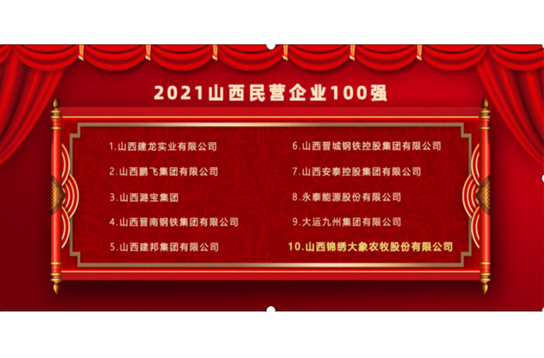 山西錦繡大象農(nóng)牧集團(tuán)股份有限公司起步于1989年,是一家集種畜禽繁育、肉雞及生豬養(yǎng)殖、飼料生產(chǎn)及加工、肉雞屠宰、雞肉和商品豬銷(xiāo)售為一體的國(guó)家級(jí)農(nóng)業(yè)產(chǎn)業(yè)化重點(diǎn)龍頭企業(yè),是華北地區(qū)最大的白羽肉雞和生豬生產(chǎn)公司。