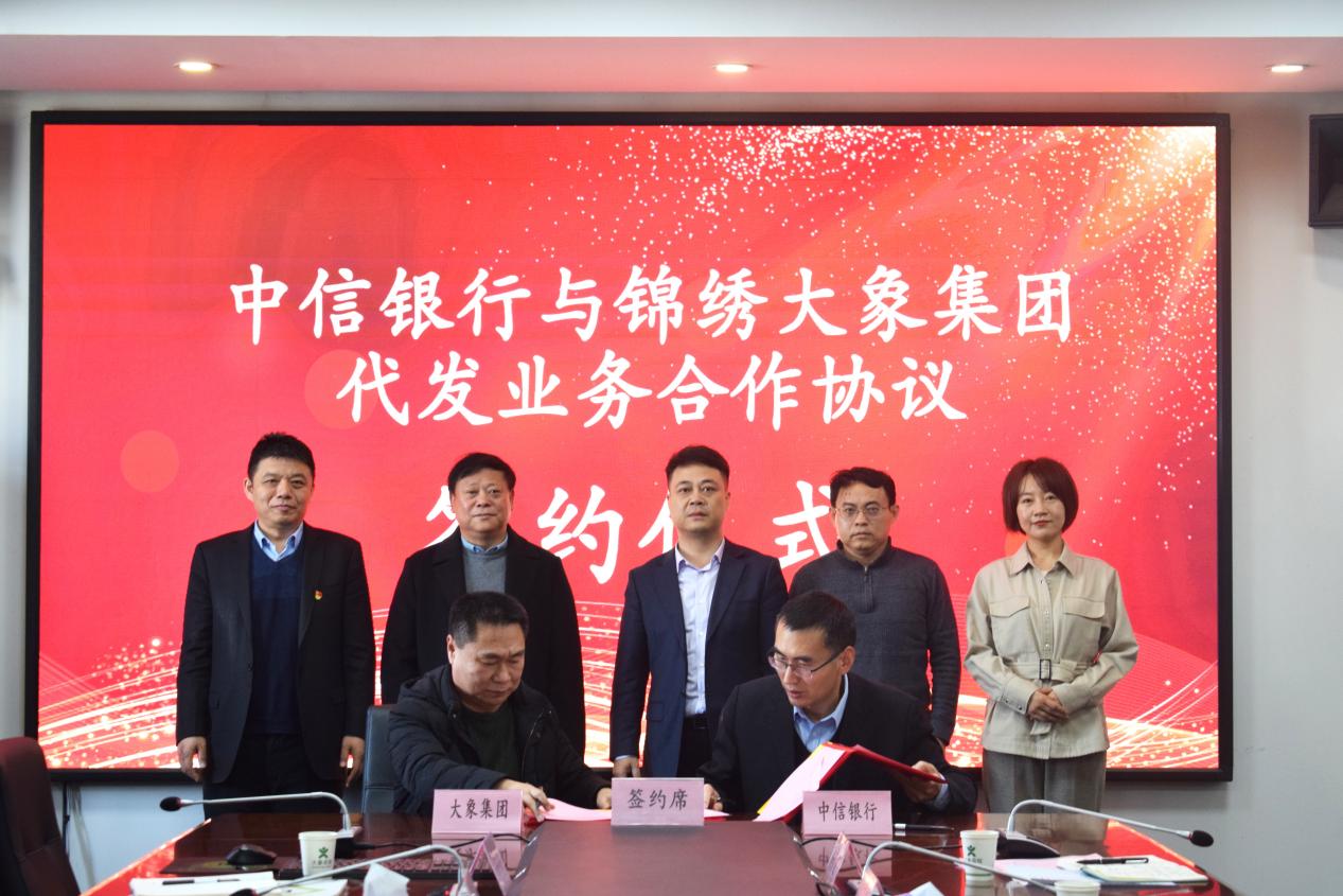 1月12日,中信銀行太原分行曹謙副行長一行來到山西錦繡大象農(nóng)牧股份有限公司考察指導(dǎo),開展業(yè)務(wù)洽談,出席雙方黨建聯(lián)建、代發(fā)業(yè)務(wù)簽約等活動(dòng)并進(jìn)行了親切友好的座談。