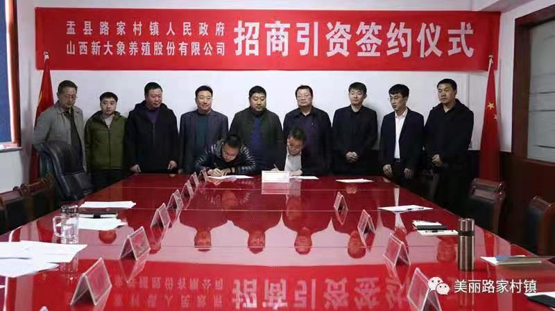 2019年11月13日,山西新大象養(yǎng)殖有限公司與盂縣路家村鎮(zhèn)舉行簽約儀式。路家村鎮(zhèn)黨委班子成員、山西新大象養(yǎng)殖股份有限公司有關(guān)負(fù)責(zé)人出席,簽約儀式在路家村鎮(zhèn)政府舉行。