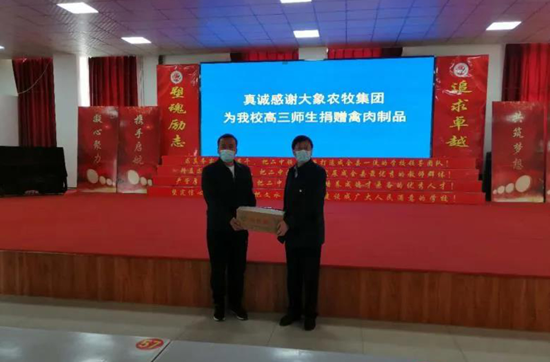 去年以來,山西大象農(nóng)牧集團(tuán)對(duì)文水二中一直給予熱情關(guān)心和鼎力支持。此次在全校上下眾志成城、抗擊新冠肺炎疫情暨高三開學(xué)封閉管理的關(guān)鍵時(shí)期,山西大象農(nóng)牧集團(tuán)再次慷慨解囊、無私捐贈(zèng)禽肉制品,極大鼓舞了文水二中師生的信心和決心,充分體現(xiàn)了山西大象農(nóng)牧集團(tuán)強(qiáng)烈的社會(huì)責(zé)任感和心系教育的高尚情懷。邢長(zhǎng)明說,學(xué)校將加強(qiáng)領(lǐng)導(dǎo)、有效統(tǒng)籌,確保把企業(yè)的愛心捐贈(zèng)用于校園疫情防控和高三沖刺第一線,切實(shí)增強(qiáng)全體師生的幸福感,推動(dòng)高三師生凝心聚力,沖刺高考,再創(chuàng)佳績(jī)。同時(shí),會(huì)切實(shí)守護(hù)好廣大師生的安全,堅(jiān)決打贏疫情防控阻擊戰(zhàn),立德樹人,務(wù)本求真,實(shí)干興校,不斷提升辦學(xué)品位,培養(yǎng)出更多的優(yōu)秀人才。